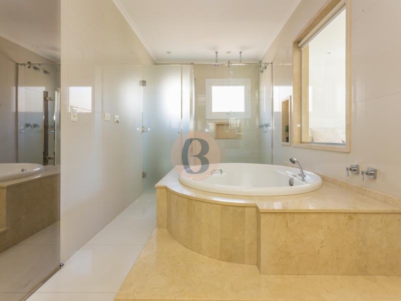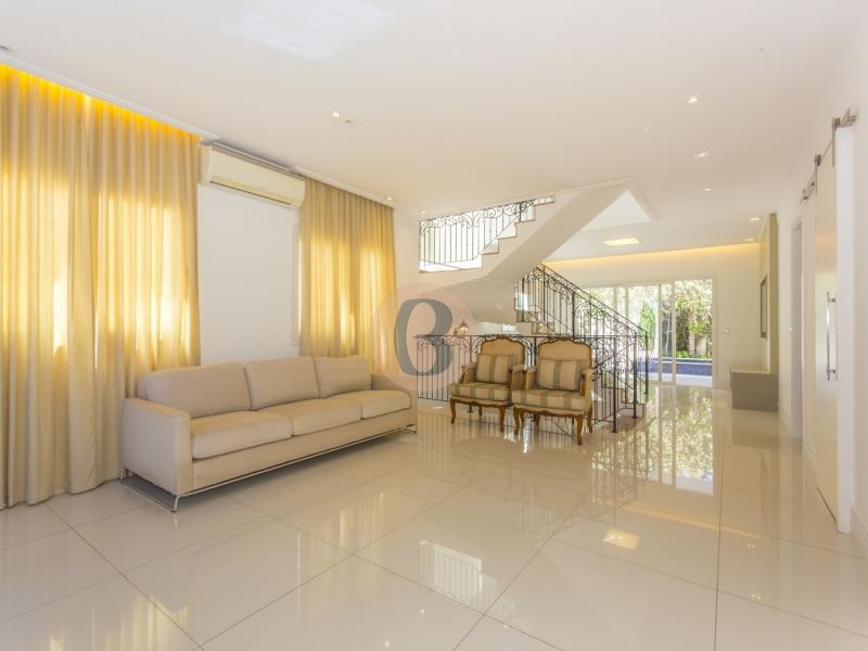 Sobrado com 04 suítes todas com closet, ar condicionado e varanda (sendo a suíte do casal com closet senhor e senhora; pia senhor/senhora, banheira de hidromassagem Jacuzzi para duas pessoas), banheira01 lavabo, sala de jantar (com mesa para 10 lugares, buffet de apoio, lustre de Cristal e varanda), sala de estar, sala de TV (com painel), escritório (com bancada e armários), cozinha (com ilha, repleta de armários, forno elétrico embutido, microondas embutido e coifa central), copa (com mesa para 05 lugares+ cristaleira e balcão para guarda louças), varanda gourmet (com armários, cuba e churrasqueira com coifa), piscina (com aquecimento solar), banheiro apoio à piscina, lavanderia, dependência de empregada com banheiro, sótão com aproximadamente 90m², amplo espaço livres para sala/ cinema, etc., lavabo de apoio, escritório com bancada e armários, Jardim (frente e fundos da casa), 05 vagas de garagem (sendo 03 cobertas). Condomínio oferece: Duas portarias (24 horas), academia (com Personal), piscina, churrasqueira, quadra poliesportiva.